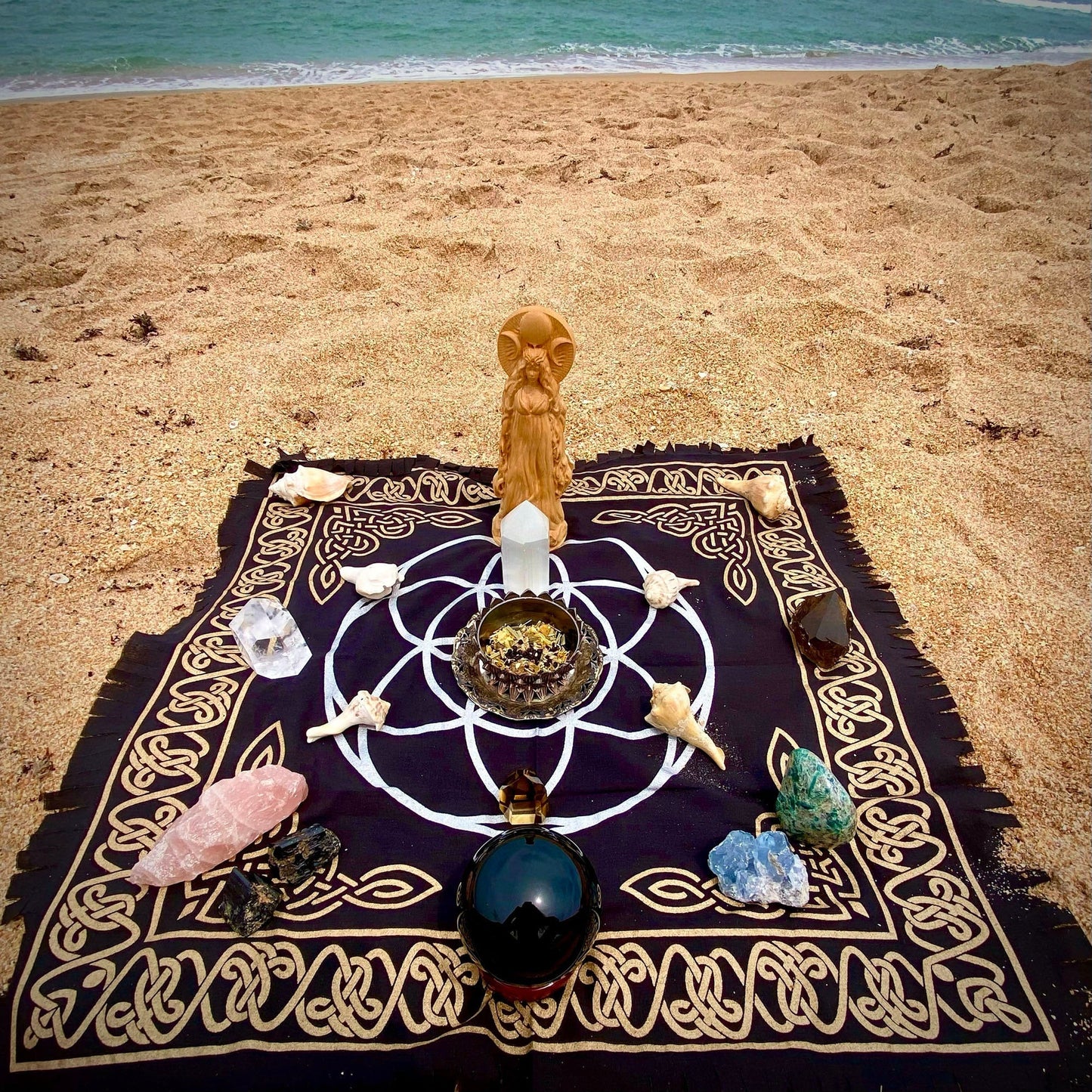 - Photographic image of the spell being cast using the exclusive Magician's Wheel ritual altar.