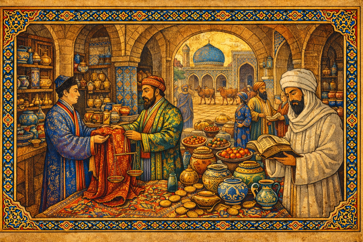 For over a thousand years, the Silk Road connected the known world. Traders carried goods that were ordinary where they came from and precious somewhere else โ silk, spices, lapis lazuli, ideas. No single trader walked the whole road. Each one knew their stretch: what they carried, where it had value, which paths were safe and which ones would swallow you.