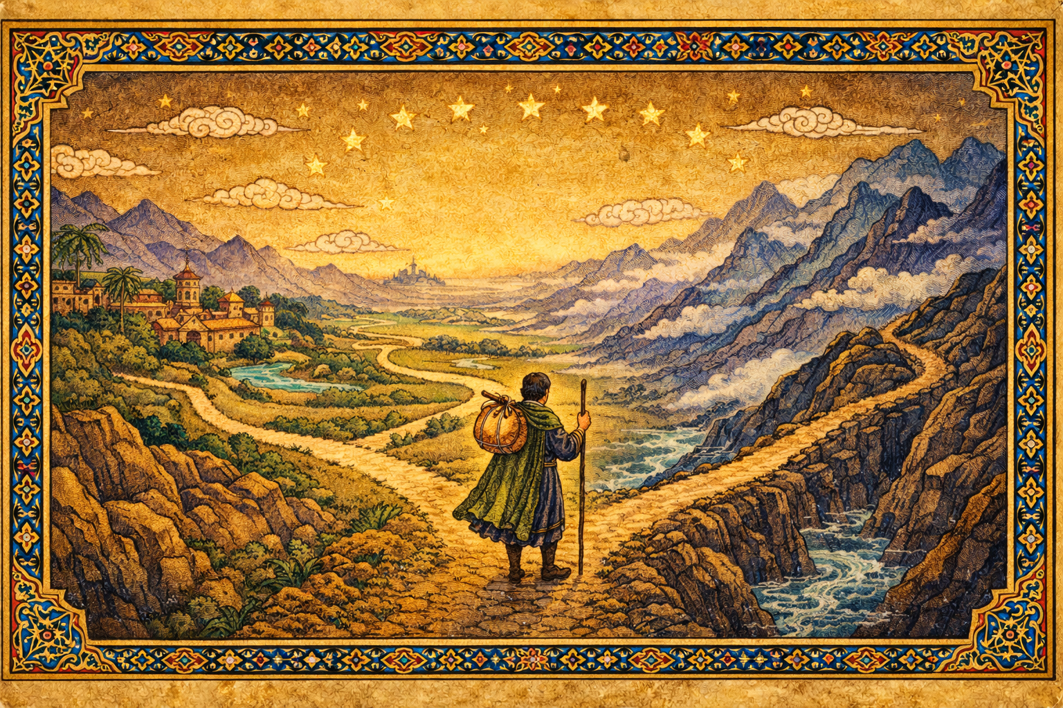 Every trader faced the same pattern. They carried something worth trading. They had to find the right market for it. The road forked and they had to choose a direction. There were hazards โ deserts, bandits, mountain passes โ and there were ways through. And at the end, a destination where the journey was worth it.